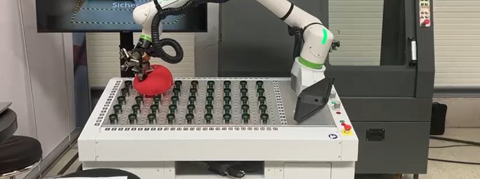 ❄️ Nowadays you can completely robotize the placing of a workpiece into a chuck. The latter only starts its closing process once the workpiece is positioned perfectly inside the chuck. Should one intervene for some reason or touch the cobot, it instantly freezes - as demonstrated in the video below.