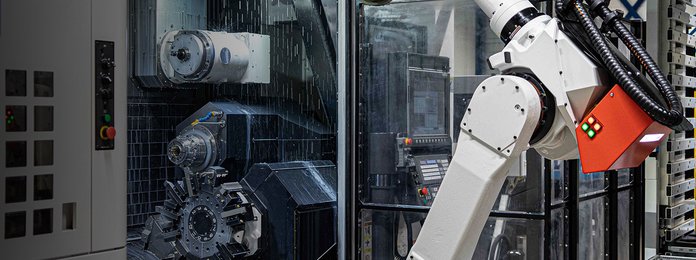 At the last AMB fair in Stuttgart, the Turn-Assist 270 i proved to be a hit: several units were immediately sold. It also comes as no coincidence: following the Turn-Assist 200 i, this is the second 'Integrated' model to be launched in the Turn-Assist Series. With these models, RoboJob is constructing the entire automation on one fixed frame. This makes it very easy to remove the automation from a CNC machine, or even to move it from one CNC machine to another. CNC lathes and turning/milling combinations may now be automated using the Turn-Assist 270 i. In comparison with the Turn-Assist 200 i, the Turn-Assist 270 i has a wider diameter range (270mm instead of 200mm) and considerably more capacity. A heavier robot payload is also possible (up to 35 kg).