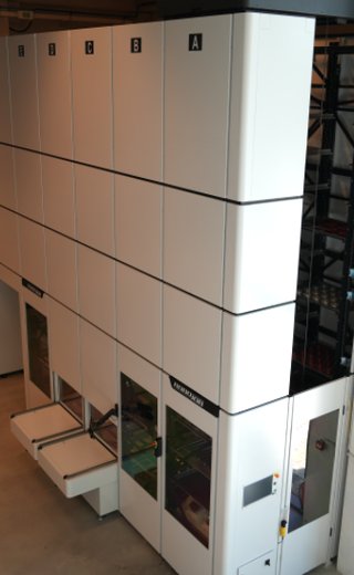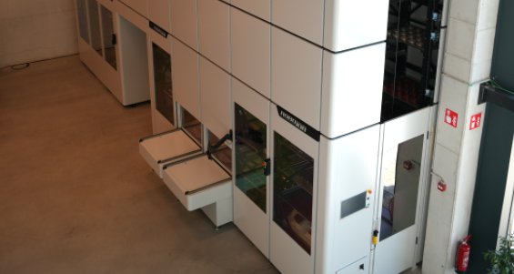 The Wall’s intelligent storage system maximizes efficiency with dynamic place allocation. Trays are optimally positioned by a hoist that moves vertically and horizontally, ensuring high storage density and compact design. This system saves factory floor space while delivering resources precisely to load stations, adapting seamlessly to your production needs.