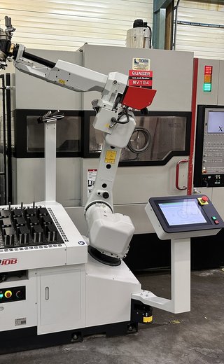 RoboJob permet l'automatisation de votre machine CNC Quaser, qu'il s'agisse d'un tour ou d'une fraiseuse. Nos solutions d'automatisation flexibles et accessibles peuvent être installées sur des machines Quaser existantes ou nouvelles.