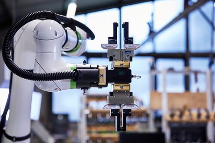 Pour SMB Feldner, un robot collaboratif alimentant la fraiseuse à 3 axes en pièces à usiner était l'option idéale. Outre la rapidité d'installation, la programmation et le passage d'une tâche à l'autre étaient les exigences les plus importantes de l'opération. Il était également souhaitable que la solution robotique soit librement accessible, c'est-à-dire qu'elle ne nécessite pas de barrière de protection.