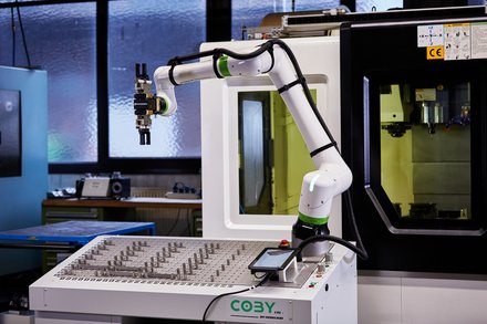 Bien que les compétences en matière de conception soient disponibles, SMB Feldner a souvent dû refuser des projets parce que le temps de traitement dans les fraiseuses d'outils et les centres d'usinage ne pouvait pas être mis en œuvre. Grâce à la solution robotisée pour le chargement et le déchargement des machines, Thomas Feldner a pu augmenter considérablement la capacité des machines en utilisant les heures creuses. Il a réalisé le projet en collaboration avec la société allemande de robotique coboworx, basée en Rhénanie-Palatinat, ce qui lui a permis d'enregistrer davantage de commandes.