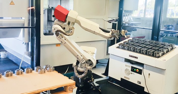 Un système robotique facilement configurable, polyvalent et fiable ? C'est l'automatisation RoboJob, idéale pour les petites et moyennes séries. Équipé du module Pallet-unload, il maximise les performances de votre machine CNC.
