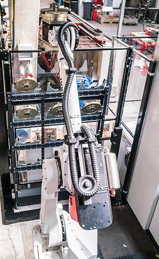 Les différentes têtes de préhension avec les griffes correspondantes sont placées dans une station d'échange de pinces. Le robot peut alors remplacer lui-même les têtes de préhension nécessaires, en suivant vos instructions dans le gestionnaire de tâches.