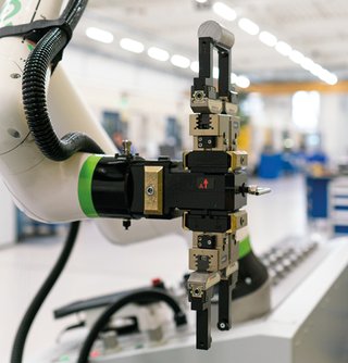 Een robot neemt de bediening van de CNC-machine over waar dat het meeste oplevert. Zo laadt hij ruwe onderdelen in de machine en ontlaadt hij de afgewerkte stukken zodra de bewerking klaar is. Afhankelijk van het proces kan de automatisering ook bijkomende taken opnemen tijdens de batchcyclus.